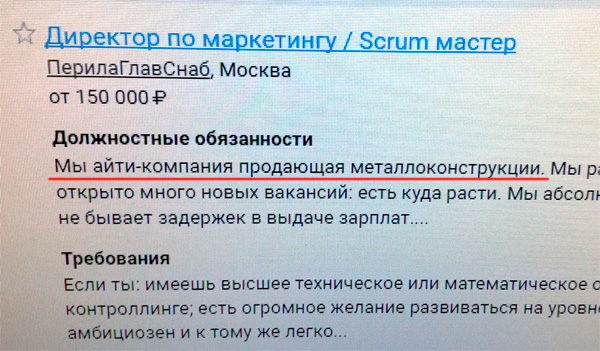 Если вы, предлагает Next, молоды, амбициозны и при этом скрам-мастер, тогда вам вот сюда! Ведь что может быть интереснее айти-компании, продающей металлоконструкции?!!