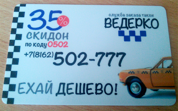 На рекламе такси Ведерко присутствует еще классное словечко Скидон.