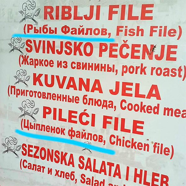 Игорь рекомендует обед настоящего программиста: и рыба файлов есть, и цыпленок файлов.