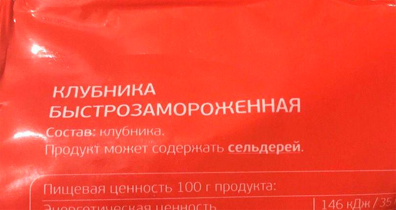 Нет, оно понятно, что такие надписи делают для аллергиков, и это очень правильно, но откуда у них сельдерей-то в клубнике взялся?