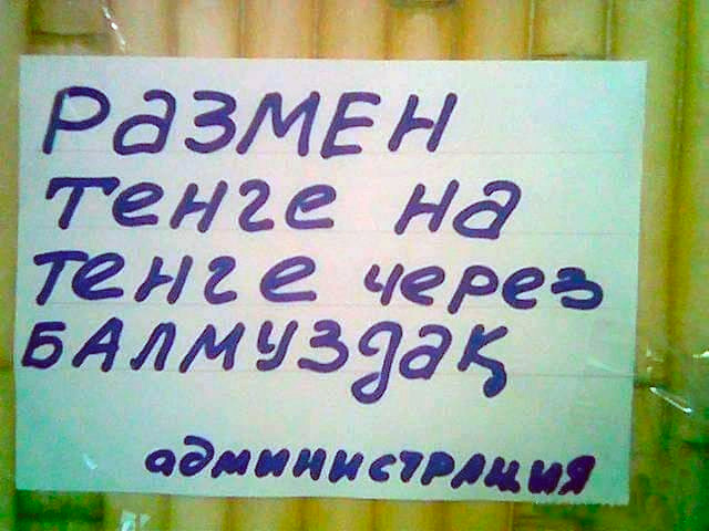 Тенге на тенге понятно, где менять. Вообще интересно, как кривой загран. русский потихоньку превращается в местную норму. Наверное, через какое-то время, будет как с американским, австралийским, британским и т.п. английским - будет стандартный казахский русский, белорусский русский и т.д.