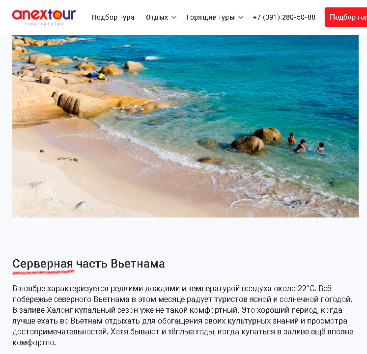 В Anextour, вздыхает Елена, явно включили режим жесткой экономии, так что тексты на сайте посадили писать сисадмина. И это очень и очень заметно.