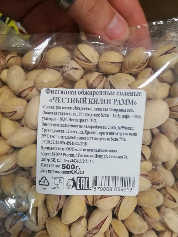 Купите честный килограмм фисташек, предлагает Гена Крокодил. Честный-пречестный. Весом в 500 граммов. Аж светится от честности.