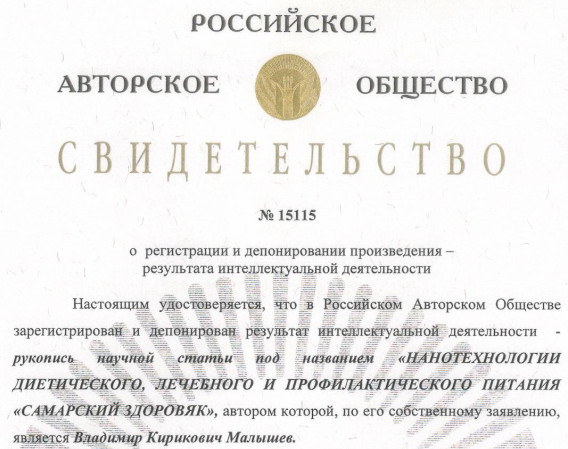 Под нанотехнологии нынче не только бюджет распиливают все кому не лень, рассказал Алексей. Есть и более безобидные проявления. Например, авторское свидетельство на рукопись (!) статьи о нанотехнологиях в кашах "Самарский здоровяк".