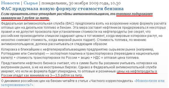 На самом деле в статье противоречий никаких нет. У нас цены на бензин поднимаются в том случае, если растет цена нефтепродуктов. А вот когда цена на нефтепродукты падает, цены на бензин снова поднимаются, чтобы производители моги компенсировать недополученную сверхприбыль. Это особенности российского ценообразования