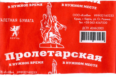 Туалетная бумага "Пролетарская" в нужное время в нужном месте - это логично, считает Николай. Но вот рабочий с колхозницей в этом месте создают совершенно лишние ассоциации.