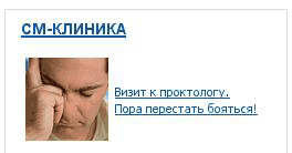 На Mail.ru, рассказал Карл, рекламируют очень миленькую садомазоклинику. А и правда, при визите к проктологу пора перестать бояться. Получи удовольствие!