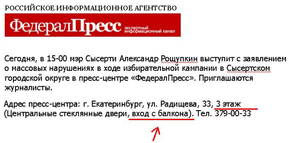 Галина рассказала об интереснейшей ситуации в Сысерти. Там мэра обязали выступить и рассказать о массовых нарушениях в ходе его избирательной кампании. Он согласился. Но чтобы журналисты особо не радовались, на пресс-конференции им придется входить с балкона третьего этажа.