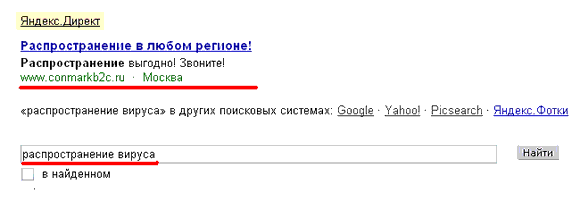 Как хорошо, радуется Юрий, что есть еще реклама в "Яндекс.Директе"! Она поможет распространить вирус в любом регионе!