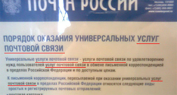 Наконец-то Почта России разъяснила, что такое универсальные услуги почтовой связи, радуется Николай. Универсальные услуги почтовой связи - это услуги почтовой связи для удовлетворения нужд пользователей услуг почтовой связи в пределах России и по доступным ценам. Только там явно какая-то ошибка. Нужно было написать так:
