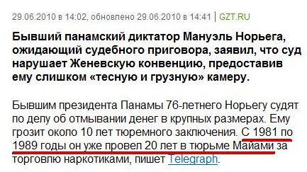 Кирилл пытается понять, что такое грузная камера и как Норьега сумел отсидеть 20 лет с 1981 по 1989 год.