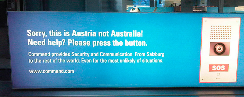 [зануда]Не Вены, а Зальцбурга. И не табло это, а реклама такая креативная. Commend Inc. - компания, занимающаяся системами безопасности, интеркомами и пр. Типа, помогут в любой ситуации.[/зануда]