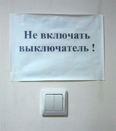 Все логично, считает Юрий. Это же выключатель, а не включатель. Его надо выключать, а не включать!