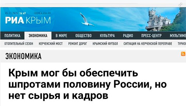 А что, гениально, считает Андрей. Крым мог бы обеспечить половину России шпротами, но, так как шпрот у них нет и работать никто не хочет, Крым и не обеспечит. Также он мог бы обеспечить половину России камчатскими крабами. Правда, крабов там тоже нет, но из-за отсутствия Камчатки в Крыму этого никто не замечает.