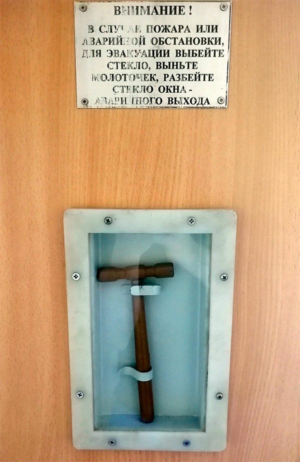 Гениальная идея в поезде Брест - Москва, радуется Павел. Чтобы в случае аварии или пожара можно было разбить стекло молотком, сначала нужно разбить рукой стекло, закрывающее молоток.