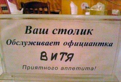 А чего вы ржете-то, спрашивает Петр? Может, официантка Витя намного лучше понимает чаяния клиентов, чем официантка Света?