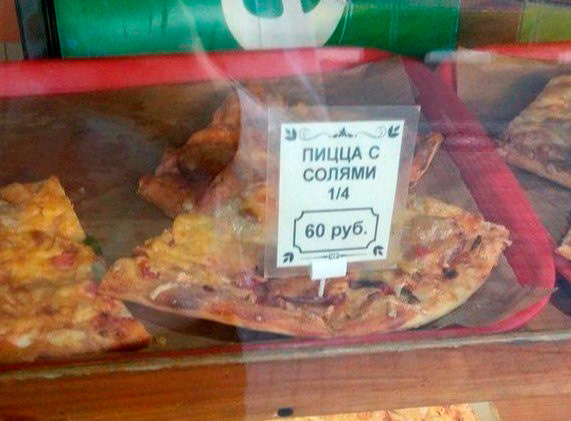 Про пиццу прочел сначала "с соплями". Я один такой?