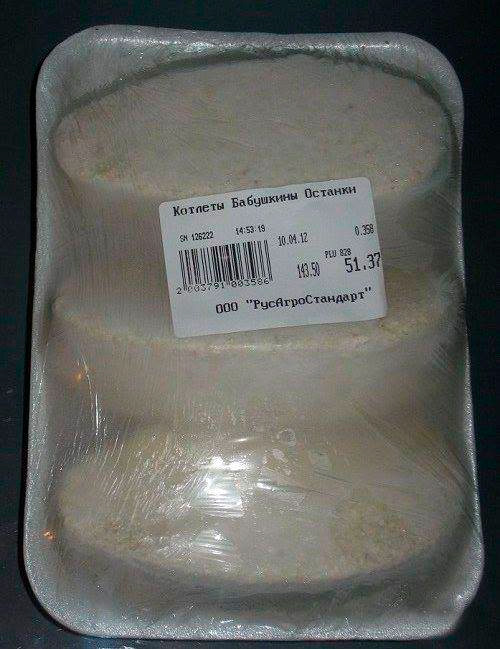 В ассортименте даже есть вот этот пирожок. Он, вообще-то, "беляш", но на этикетке написано то слово, которое обычно произносят, когда его откусывают.