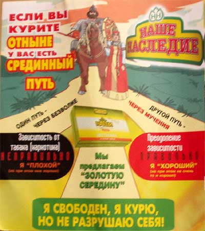 Конечно, благодетели прямо не могут сказать, какую травку они туда пихают, чтобы было хорошо. Они застенчиво говорят: "На основе душицы и чабреца, в общем, смесь трав" - но при этом ласково подмигивают, и на душе у нас сразу становится тепло - мы понимаем, что ТУ травку они туда также засунули. И будет нам хорошо. Я свободен, я курю, я не разрушаю себя, да и крыша также становится совершенно свободной и улетает в теплые края...