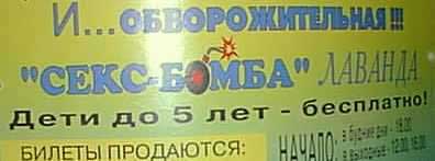 В общем, балет в не очень хороших действиях. Прямо скажем - не фонтанных действиях. Болотистых. Поэтому не пойдем мы на балет, а отправимся лучше смотреть на сись... на систематически выступающую секс-бомбу Лаванду. Главное - детишкам до пяти лет бесплатно, так что вообще никаких проблем. А детям с детства надо привыкать к сексу. И к бомбам: