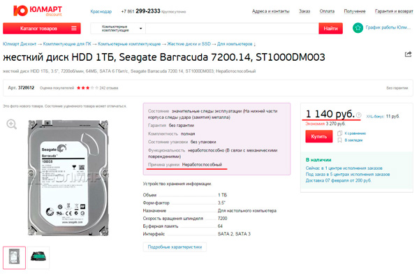 skyroger2: А с неисправным HDD то что не так? Ну продают его по дешевке на запчасти, какому-нибудь сервису по восстановлению информации вполне может пригодиться в качестве донора контроллера.
