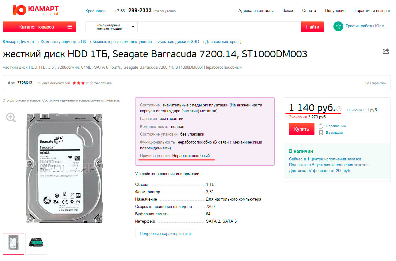 "Кому неработающий жесткий диск за 1140 рублей?" - предлагает Николай. Его можно использовать для засолки капусты. А почему 1140 рублей за обычную железку? Да просто денег кому-то очень хочется.