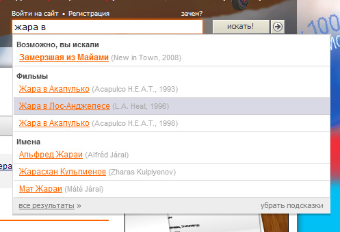 Релевантность поиска на "Кинопоиске", рассказал Максим, выше всяких похвал! В такую жару и действительно - так хочется замерзнуть в Майами...