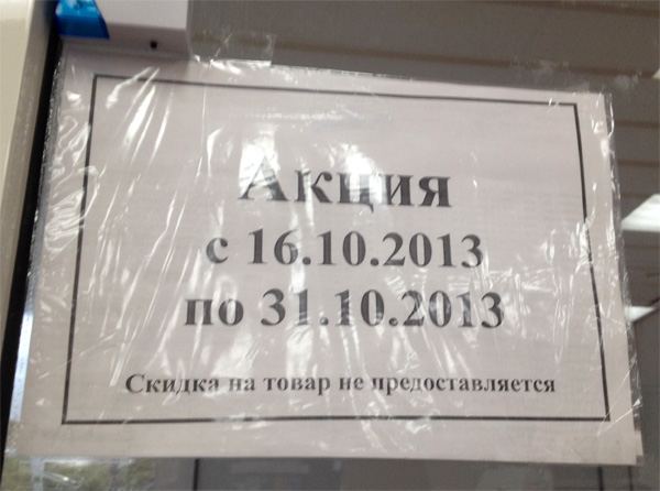 Вот умеют же эти маркетологи завлечь, считает Сергей. У всех акции со скидками, а эти придумали гениальную вещь: акция, в которой убираются всякие скидки. Торопитесь, только сегодня! Но не толкаться, граждане, все в очередь!