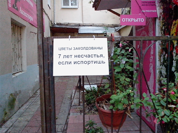 Простейшее заклинание из серии "Кто сопрет - зарежется" хорошо работает и сегодня, радуется Светлана.