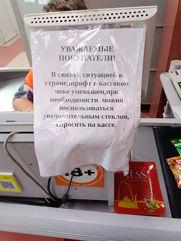 Печатавший объявление про чеки - расточитель! Надо было печатать пятым полупрозрачным шрифтом на листе А9!