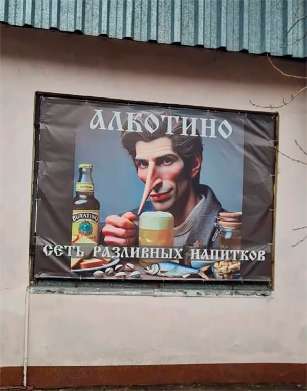 Хорошо хоть, что креативщеги "Алкотино" не нарисовали нос погруженным в пиво.