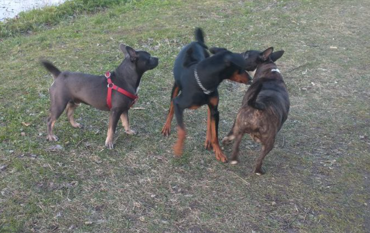 вот тут слева например уникальный зверь - мама унего питбуль, а папа американский голый терьер 😖