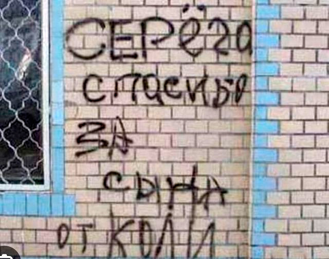 Так там же видно, что "спасибо за сына" написано одной рукой, а "Серёга" и "от Коли" - другой. Видимо, шутник какой-то после приписал.