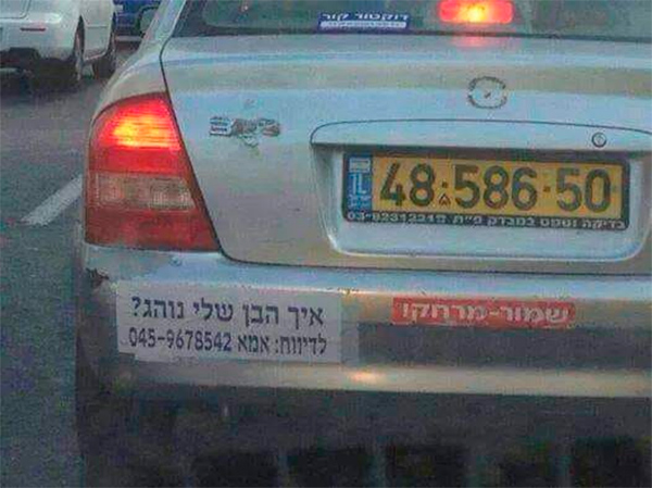 Такое увидишь только в Израиле, считает Elena. На плакатике написано: "Как водит машину мой сын? Сообщите маме".