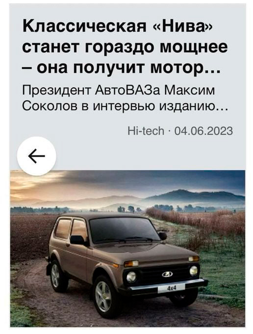 Шок - это по-нашему, считает Никита. "Нива" получит мотор - вон до чего дошло! Так на ней, конечно, будет кататься немного сподручнее.