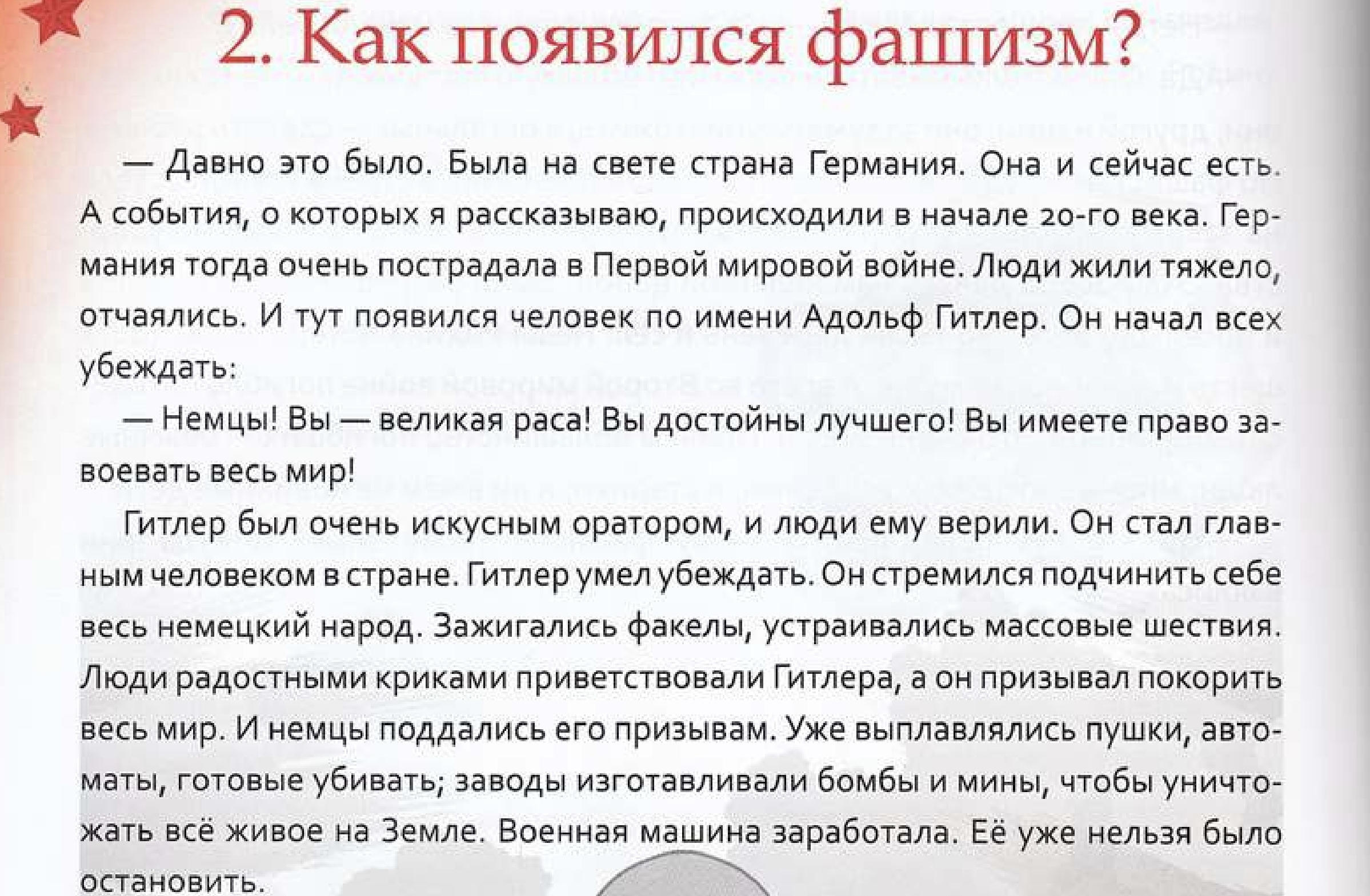 Ну вот, вздыхает Ульяна, теперь и самые маленькие в РФ получили свою настольную книжку. А то как же - с раннего детства надо учиться убивать по приказу безумного бункерного дедка. Убивать и умирать.