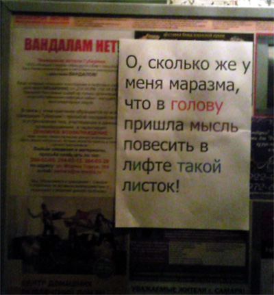 Сергей прислал наглядную агитацию из лифта города Самары. Вообще, слегка психоделическая агитация получилась.