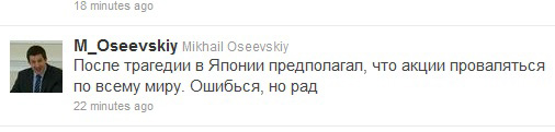Вице-губер Санкт-Петербурга Михаил Осеевский, рассказал Сергей, также обзавелся твиттером - ну, президент же требует... Правда, вице-губер культурной столицы зачем-то начал в твиттер строчить сам. И это прекрасно, конечно!