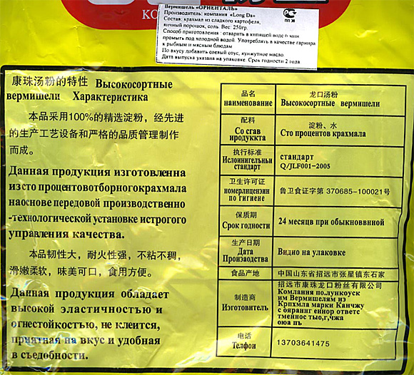 Кирилл всем настоятельно рекомендует китайские продукты. Вот, например, вермишель "Ориенталь". Изготовлена из ста процентов отборного крахмала! При этом, правда, почему-то не клеится, но зато удобная в съедобности. Съел стопроцентного крахмальчика - и готов заворот кишок!