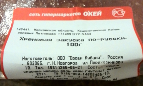 Вот такая вот хреновая закуска по-русски. С другой стороны, томат, чеснок, соль, хрен, глутамат - а как еще это назвать-то? Конкретно хреновая, по-другому и не скажешь.