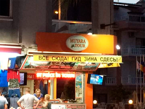 Все сюда, призывает Антон. И гид Зина - здание, здоровье, сдесь, - и стюардесса по имени Жанна.