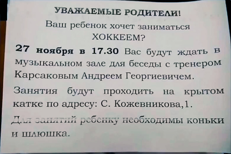 Да на такой хоккей, считает Sidr, и папы с удовольствием придут заниматься.