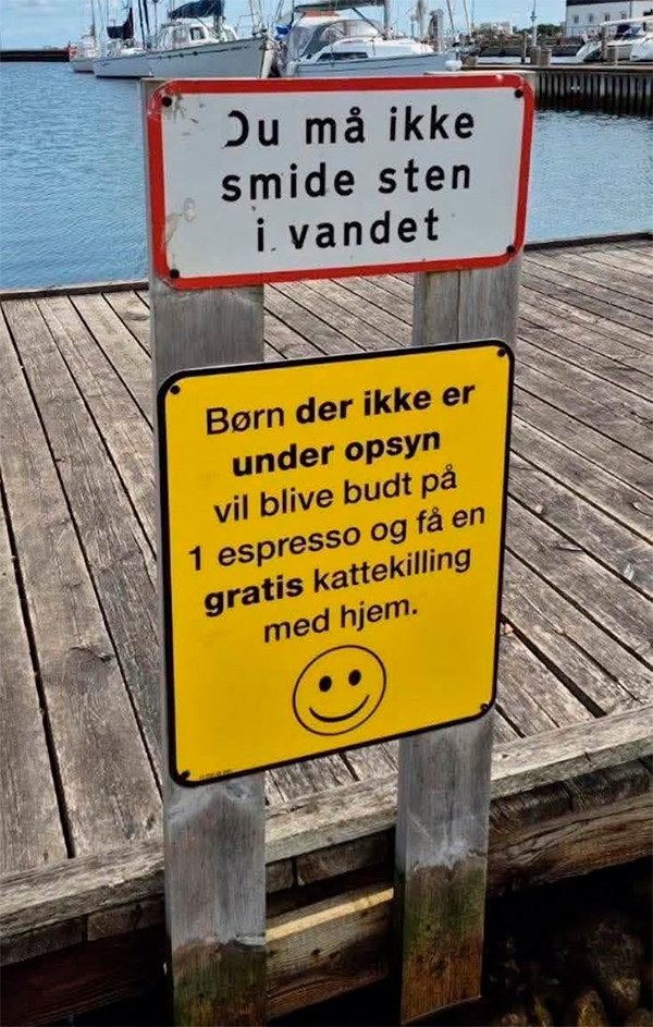 На вывесках надписи, рассказал Бундервасер: "Камни не бросать", "Детям без присмотра будем давать бесплатный эспрессо и котенка домой".