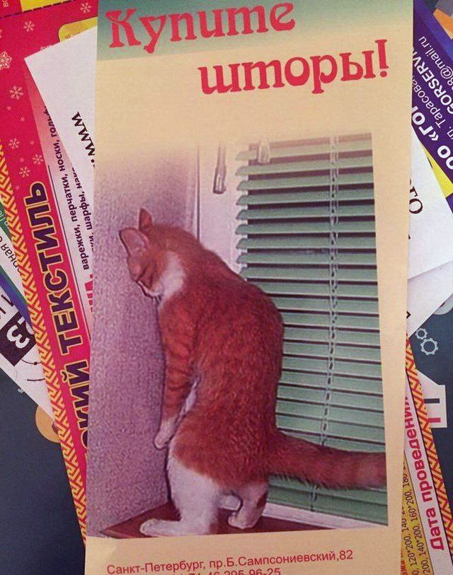 А кот-то в чем провинился, недоумевает кот Бублик? По шторам лазил? Так он и по жалюзи сможет! Мы, коты, такие, мы ловкие!