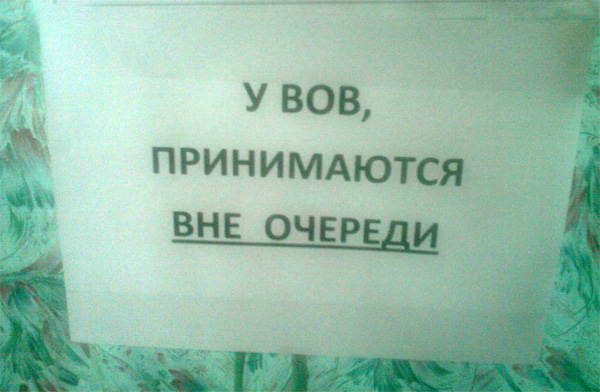 В нынешней России, замечает ZeroWitch,  Вовы всегда принимаются без очереди. Попробуй не прими, на самом деле.