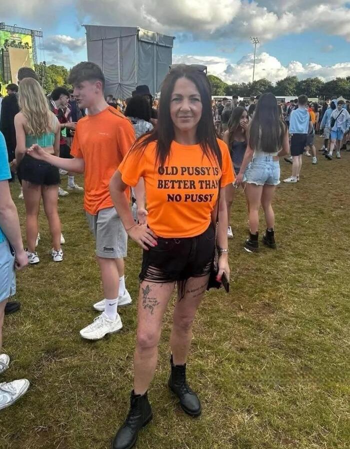 Надпись на майке "Старая киска лучше, чем вообще никакой", рассказала Лера. Интересно, что ее заставило надеть такую майку? Может, спор проиграла?