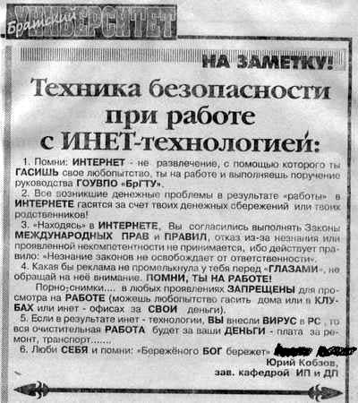 Евгений Зарубин прислал очень интересные правила, которые их завкафедрой составил для работы в ИНЕТЕ. Очень поучительно, между прочим...
