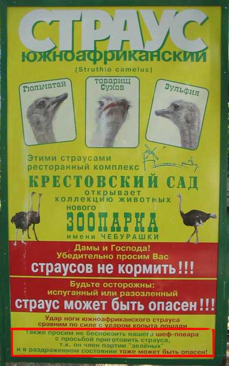 В ресторанном комплексе "Крестовский сад", замечает Дмитрий, посетители явно заколебали не только страусов, но и шеф-повара!