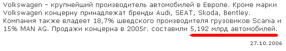 На самом деле концерн "Фольксваген" продал, конечно, 5,192 миллиона автомобилей, но в "РБК" на такие мелочи внимания не обращают.