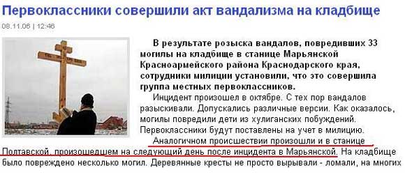 Подростки совершили акт вандализма на кладбище, ужасается Sof, а журналист "МК" совершил акт вандализма в заметке. Акт вандализма по отношению к великих русских языков говорить...